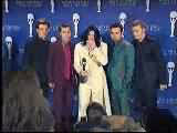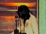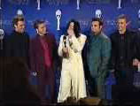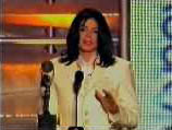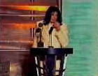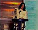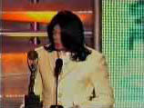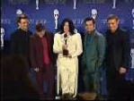 Vêtu de blanc Michael est sur la scène où se déroulait la cérémonie d'intronisation au Rock and Roll Hall of Fame, il a accepté avec honneur le prix que lui tendait Lance Bass du groupe N'Sync |